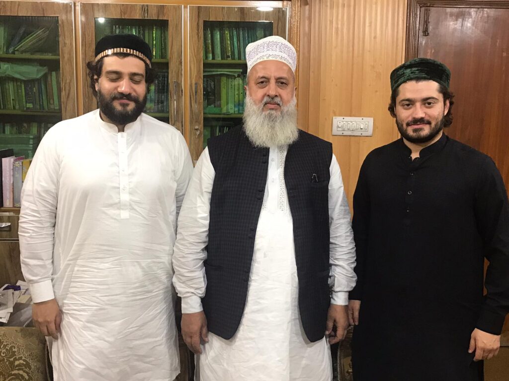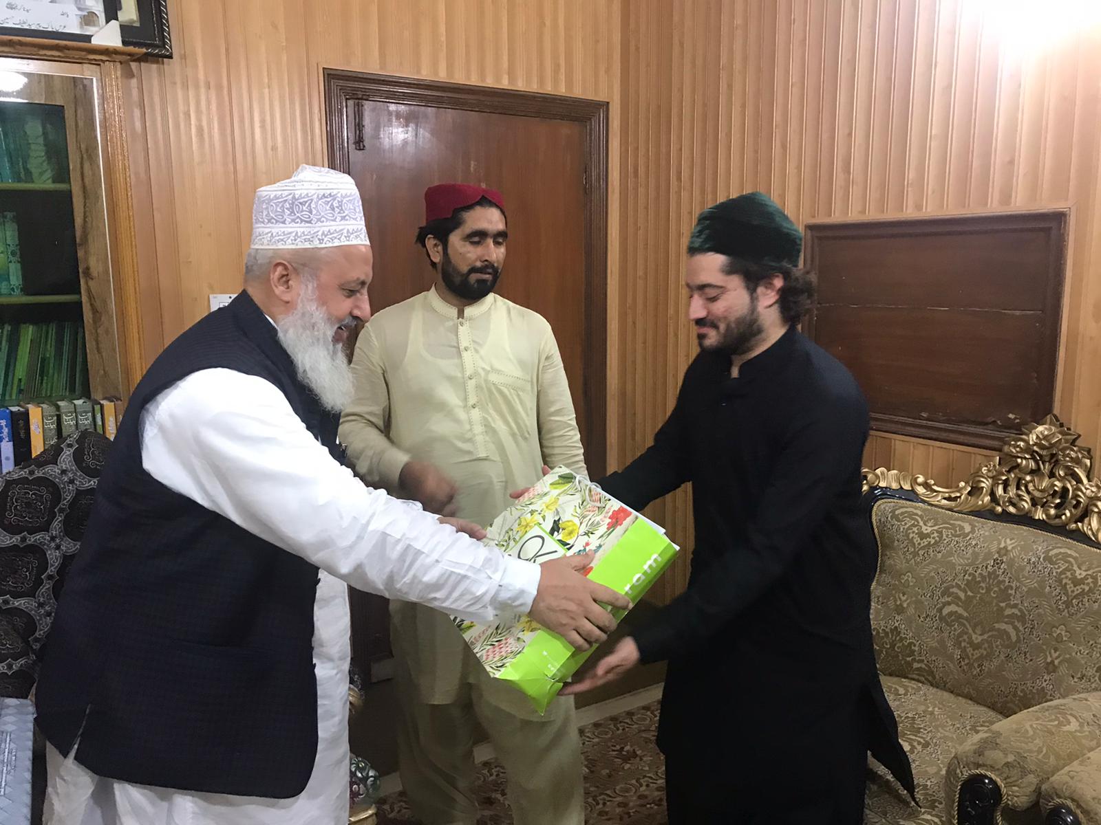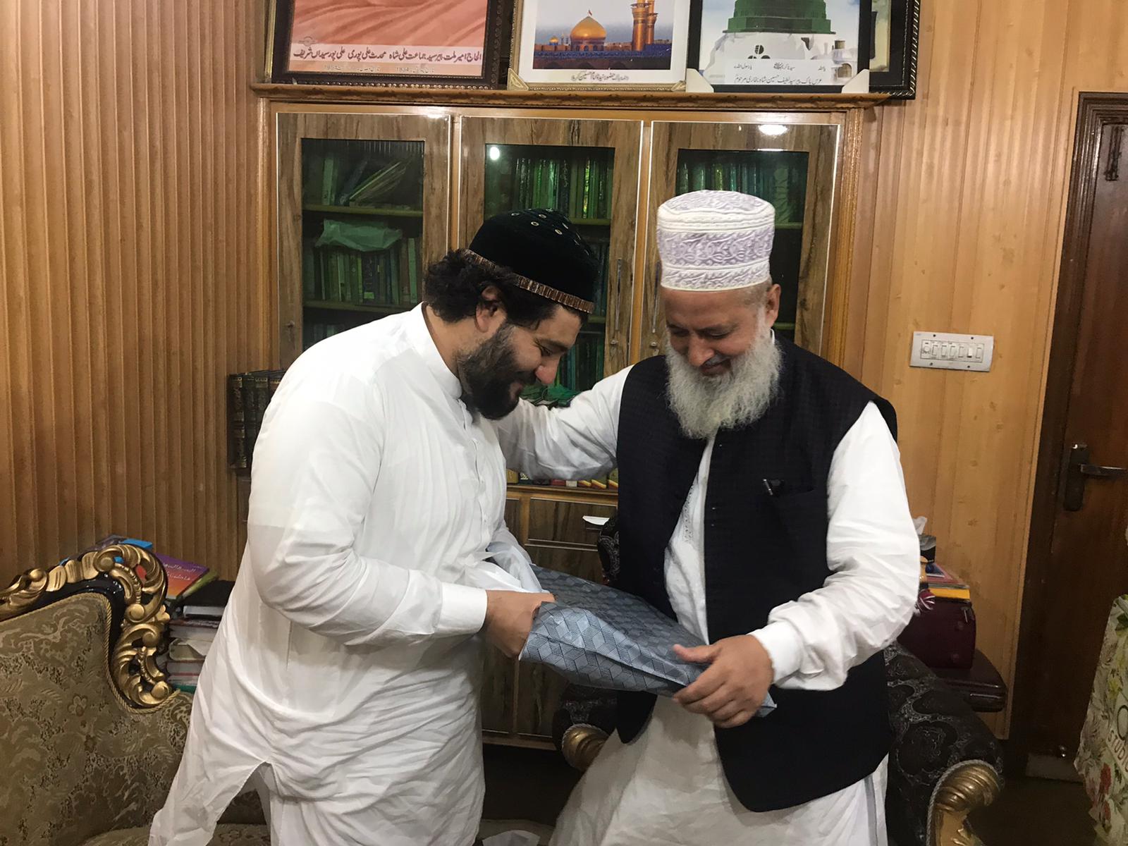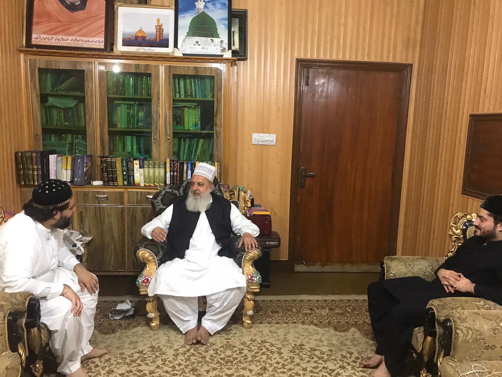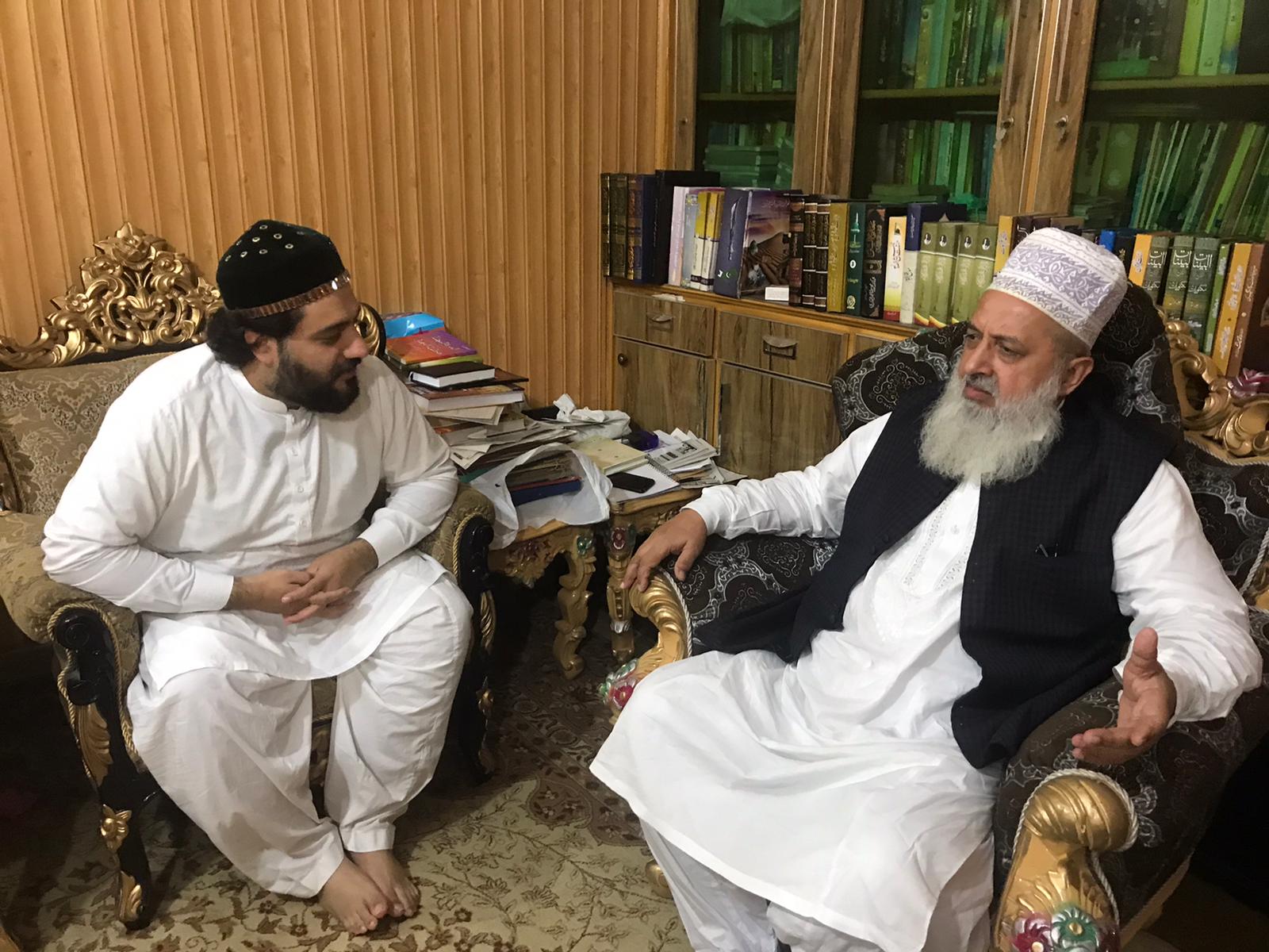 آستانہ عالیہ کاظمیہ فیروزیہ، سندھ کے زیب سجادہ نشین پیر سید عثمان شاہ فیروزی صاحب سجادہ نشین و جانشین حضرت امیر ملت پیر سید منور حسین شاہ جماعتی صاحب سے ملاقات کرتے ہوئے اور سندھ میں ہونے والی عظیم الشان کانفرنس کے حوالے سے فیروزی صاحب قبلہ پیر صاحب سے مشاورت کرتے ہوئے