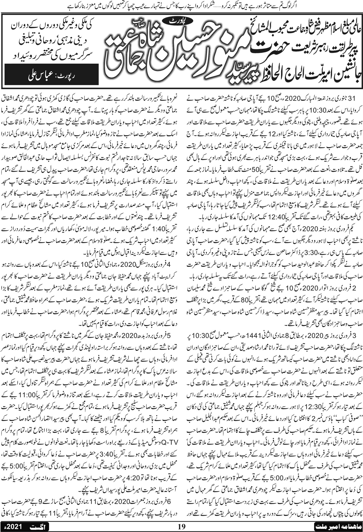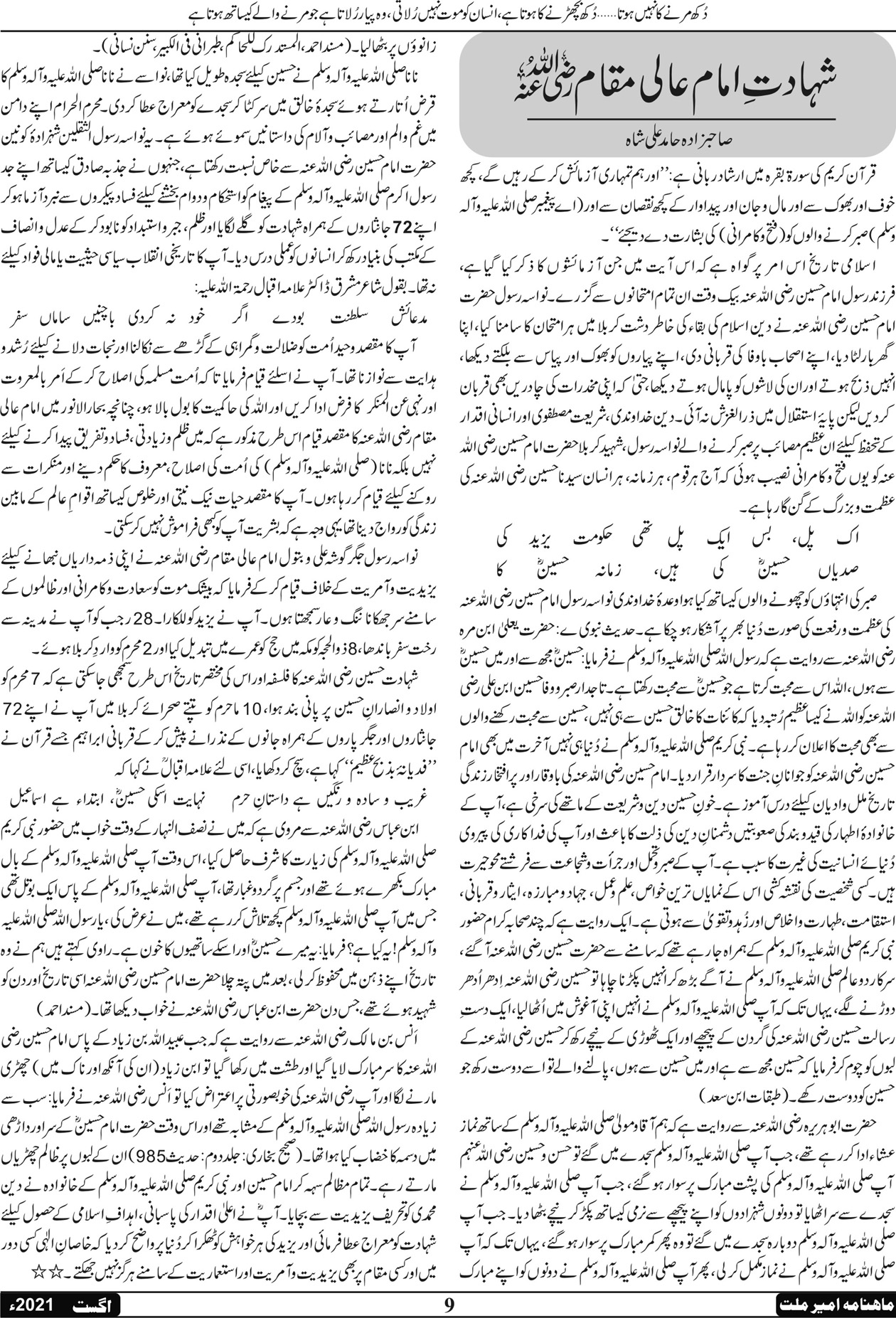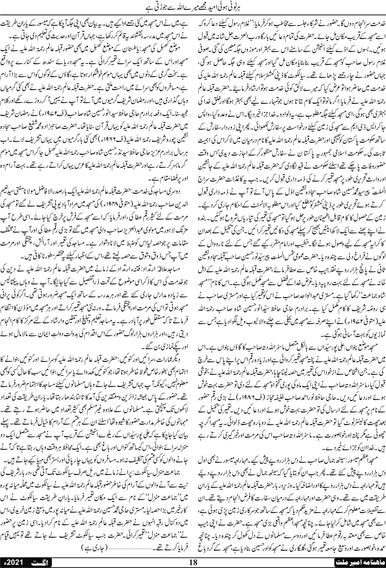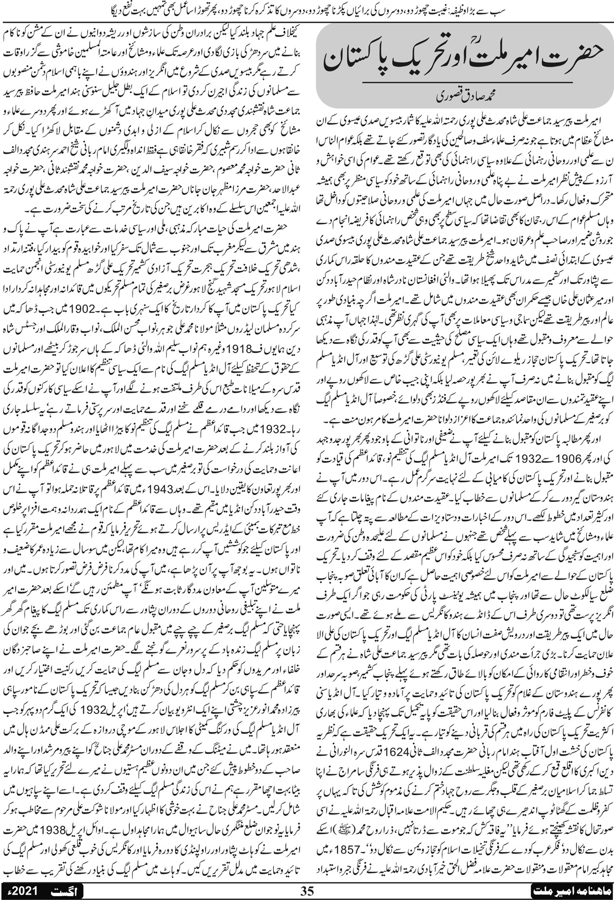 ماہنامہ امیر ملت | اگست 2021