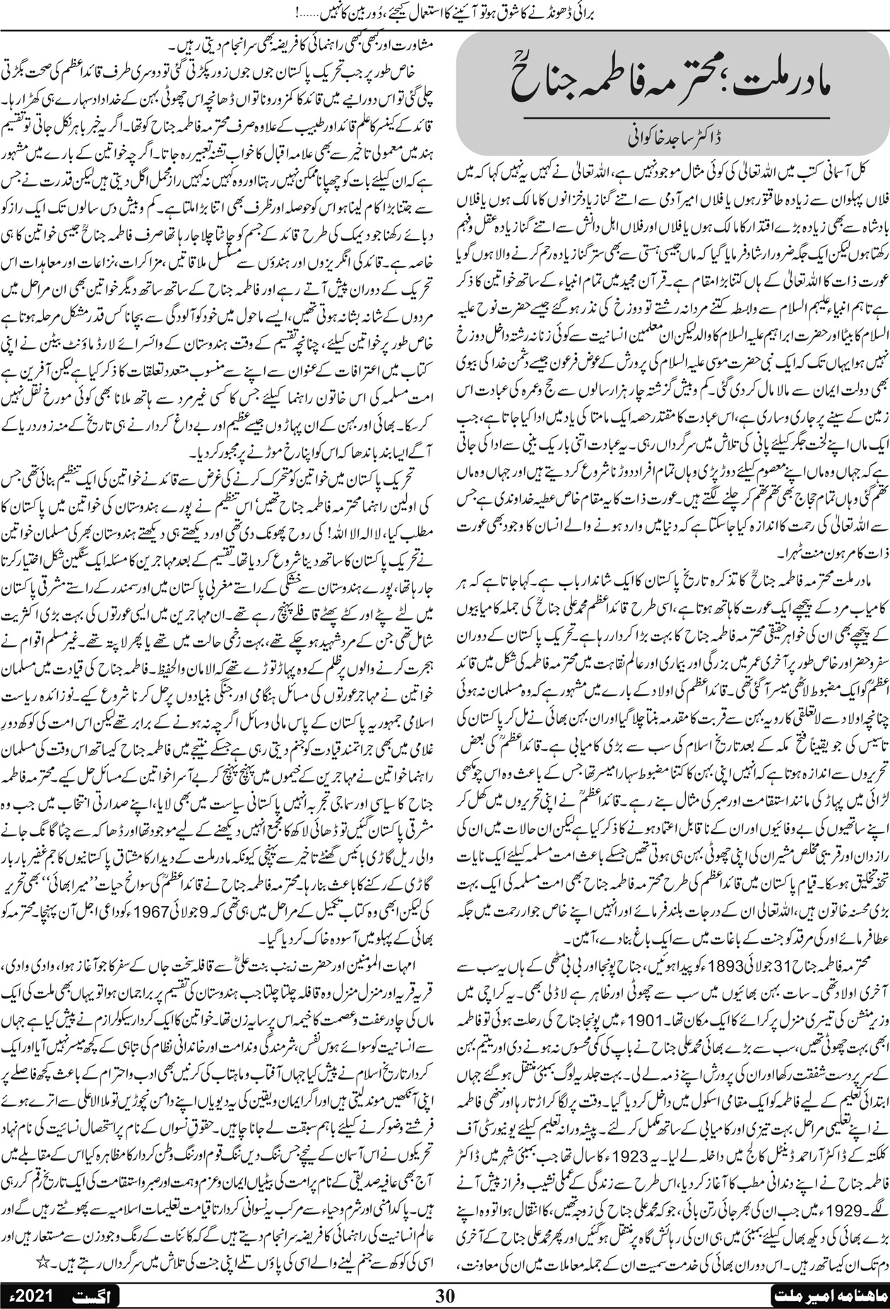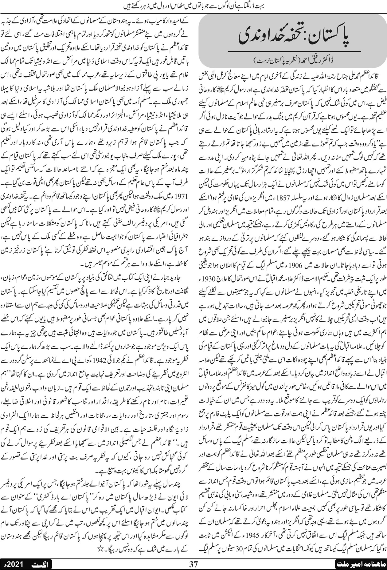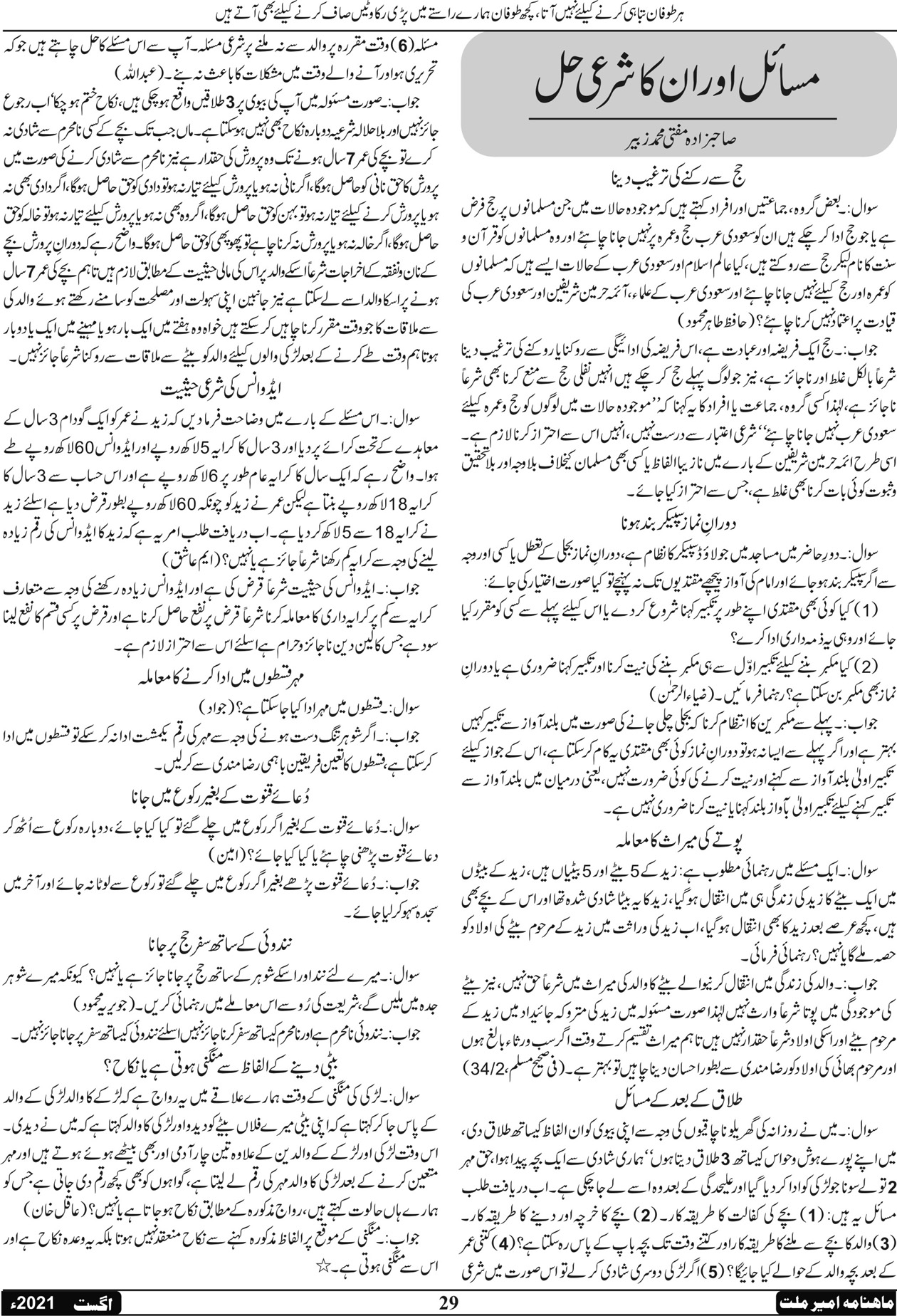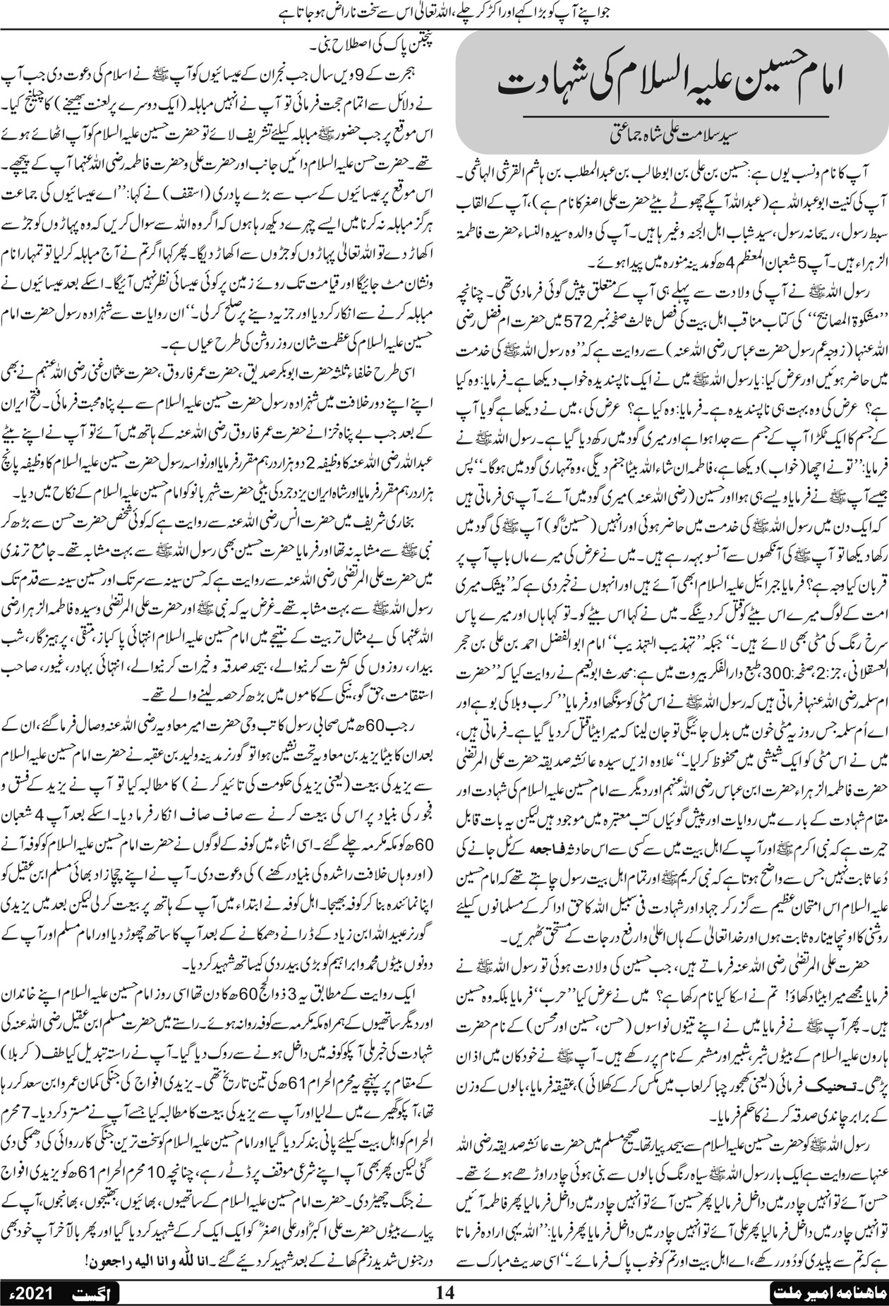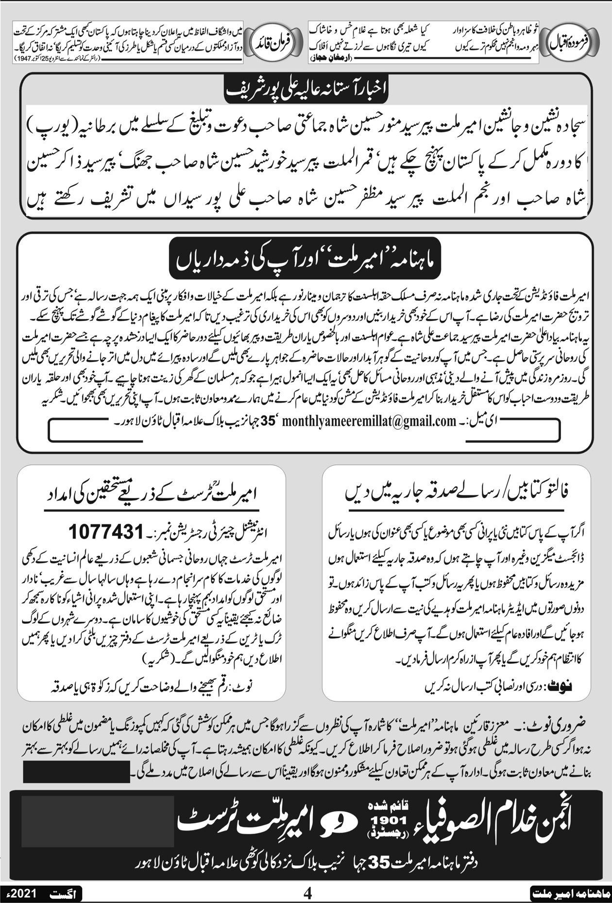 ماہنامہ امیر ملت | اگست 2021