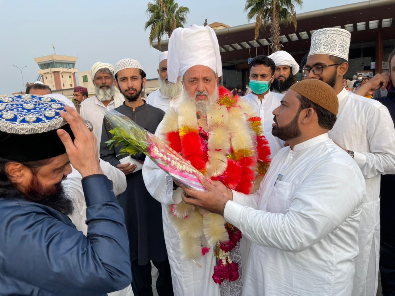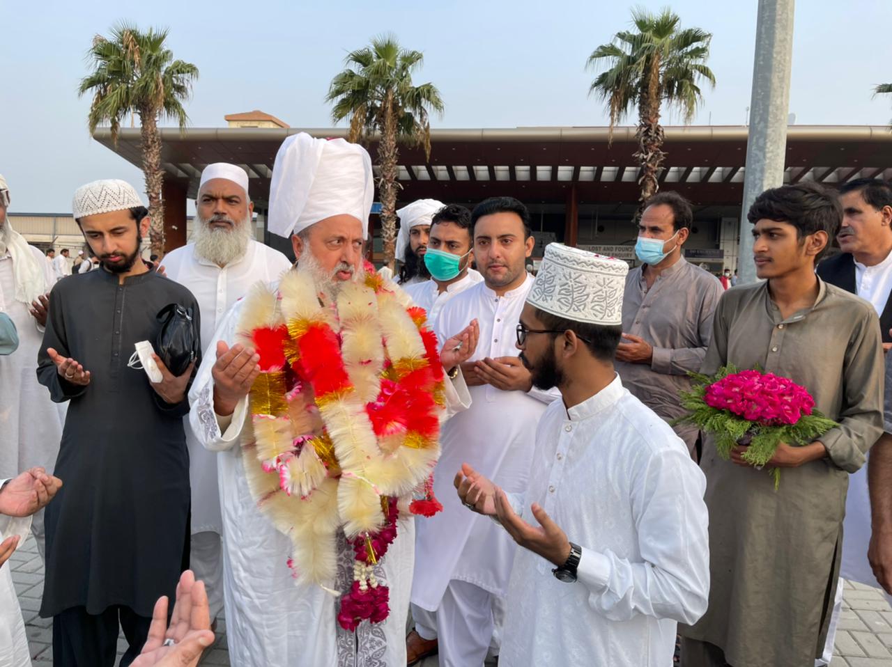 سیالکوٹ انٹرنیشنل ائیرپورٹ سے فیس بک ٹویٹر واٹس ایپ تبلیغی وروحانی سرگرمیاں, تبلیغی وروحانی سرگرمیاں, سجادہ نشین امیر ملت کی تبلیغی وروحانی سرگرمیاں الله پاک کے فضل و کرم سے یو کے و یورپ کے دورے کے بعد سجادہ نشین و جانشین حضرت امیر ملت پیر سید منور حسین شاہ جماعتی صاحب پاکستان پہنچ گئے ہیں صاحب زادہ سید علی حیدر حسین شاہ جماعتی صاحب کی قیادت میں پیر بھائیو نے قبلہ پیر صاحب کا استقبال کیا