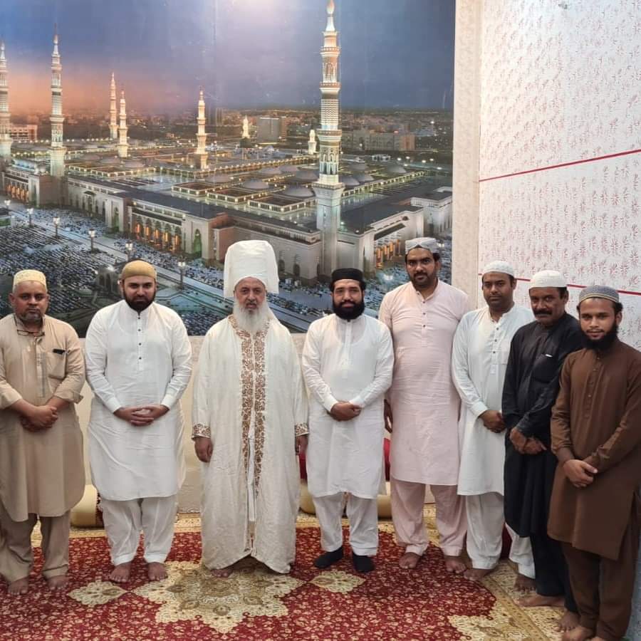 سجادہ نشین آستانہ عالیہ چادر والی سرکار پیر سید علی حسین شاہ صاحب اور صاحب زادہ سید شوکت حسین شاہ صاحب نے قبلہ پیر صاحب کا استقبال کیا