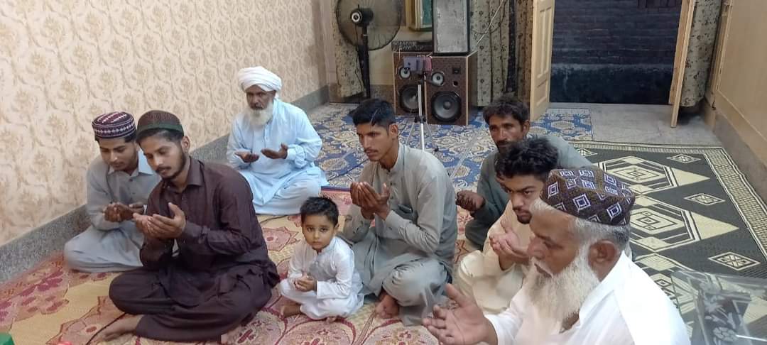 چک میانہ ضلع جہلم میں محمد فیاض جماعتی صاحب کے گھر پر سجادہ نشین و جانشین حضرت امیر ملت پیر سید منور حسین شاہ جماعتی صاحب نے دعائے خیر فرمائ