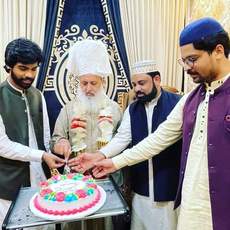 ڈیرہ اللہ توکل، نشست گاہ، آستانہ عالیہ رسول پور شریف پر سجادہ نشین حضرت امیر ملت پیر سید منور حسین شاہ جماعتی صاحب تشریف فرما ہوئے، امام عالی مقام سیدنا حضرت امام حسین علیہ السلام کی یوم پیدائش کے موقع پر کیک کاٹا گیا