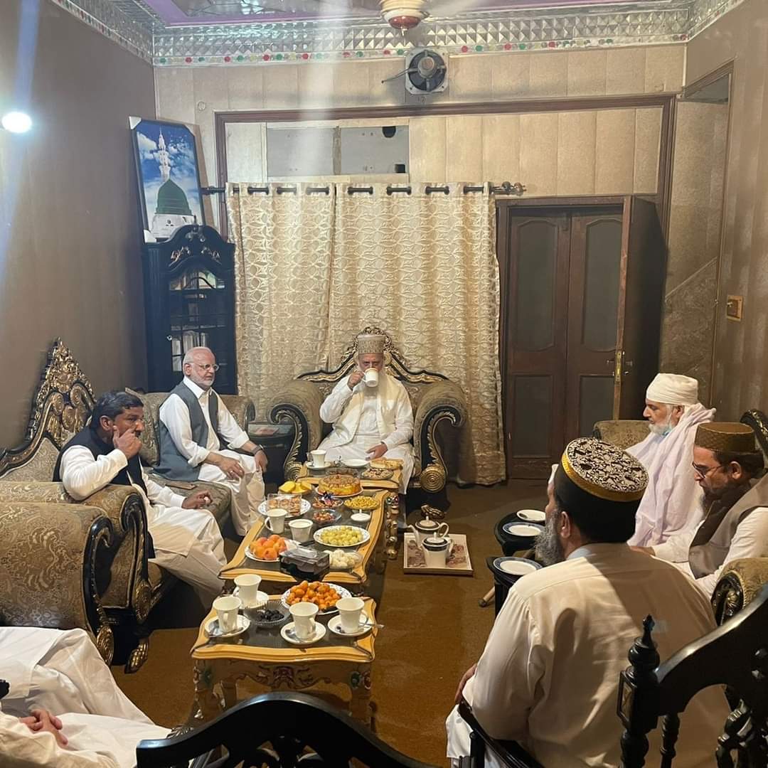 لاہور سے فیس بک ٹویٹر واٹس ایپ تبلیغی وروحانی سرگرمیاں, تبلیغی وروحانی سرگرمیاں, سجادہ نشین امیر ملت کی تبلیغی وروحانی سرگرمیاں جماعت منزل لاہور میں چوہدری محمد اعجاز صاحب اور ان کے ہمراہ ایک وفد سجادہ نشین حضرت امیر ملت پیر سید منور حسین شاہ جماعتی صاحب سے ملاقات کرتے ہوئے پیر محمد رفیق الحسن قریشی صاحب، پیر سید شفیق حسین شاہ جماعتی صاحب و دیگر بھی موجود