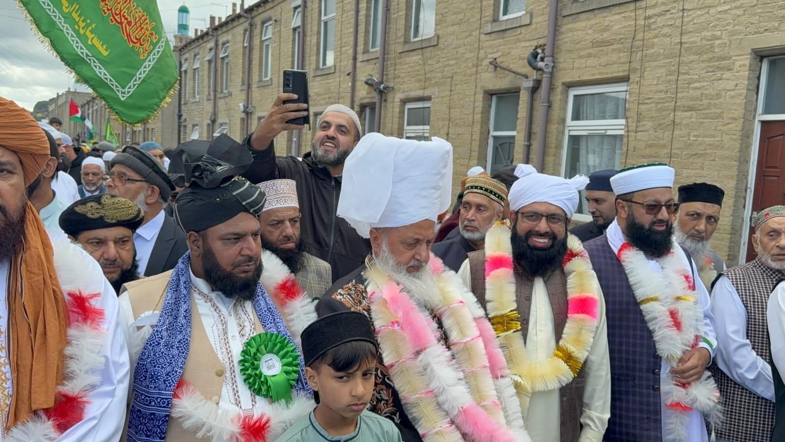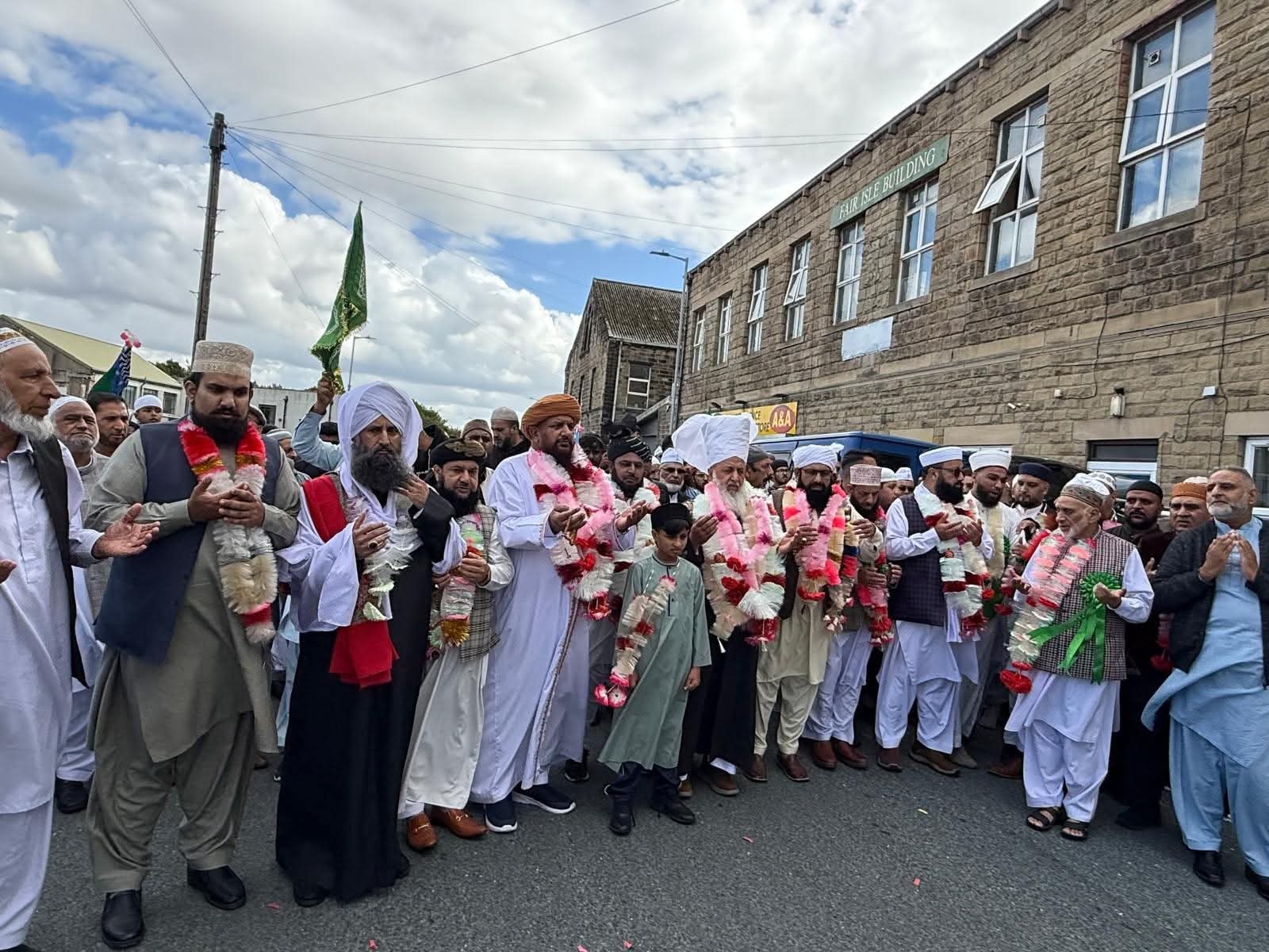 یارکشائر سے 1 فیس بک ٹویٹر واٹس ایپ تبلیغی وروحانی سرگرمیاں, تبلیغی وروحانی سرگرمیاں, سجادہ نشین امیر ملت کی تبلیغی وروحانی سرگرمیاں یو کے کے شہر کیتھلی کی جامع مسجد سے مرکزی سالانہ عظیم الشان جلوس بسلسلہ جشن عید میلاد النبی صلی اللہ علیہ والہ وسلم کا انعقاد کیا گیا جس کی قیادت سجادہ نشین حضرت امیر ملت پیر سید منور حسین شاہ جماعتی صاحب نے فرمائ