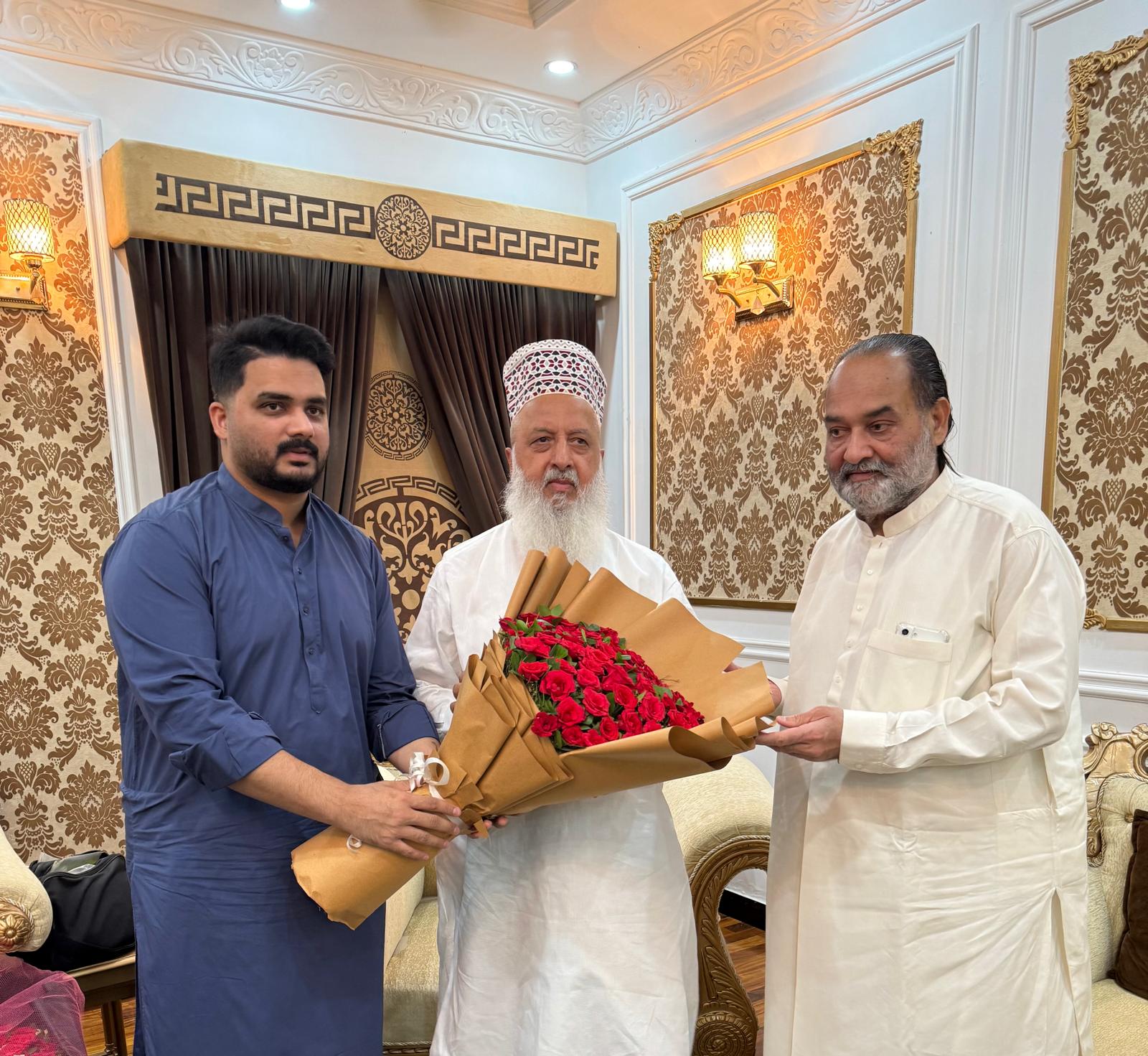 جماعت منزل لاہور سے فیس بک ٹویٹر واٹس ایپ تبلیغی وروحانی سرگرمیاں, تبلیغی وروحانی سرگرمیاں سجادہ نشین و جانشین امیر ملت حضور قبلہ مہرالملت الحاج الحافظ پیر سید منور حسین شاہ صاحب جماعتیدامت برکاتہم القدسیہ کے ساتھ اسلام آباد سے آئے ہوئے فرید خاں صاحب اور ان کے بیٹے کی ملاقات
