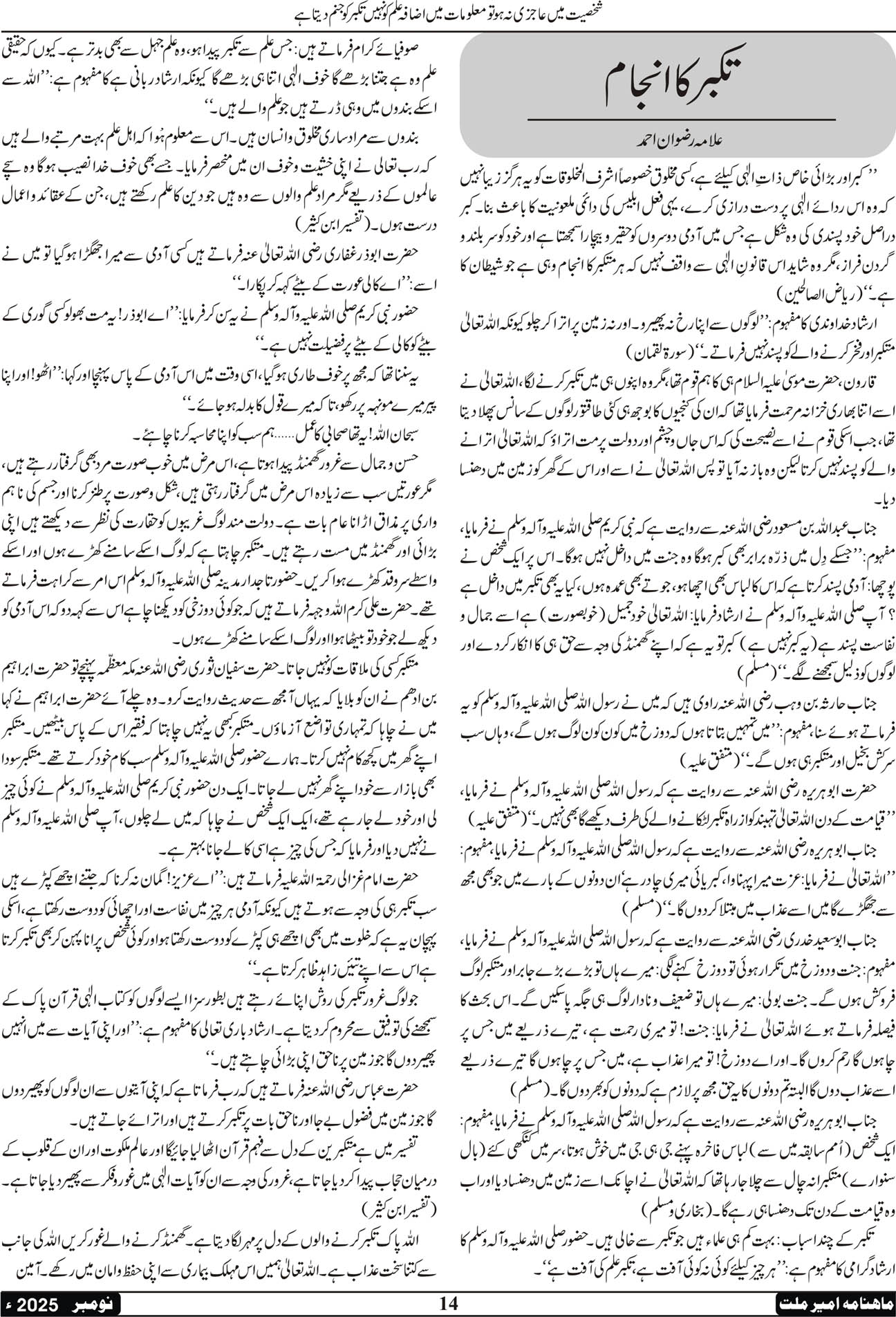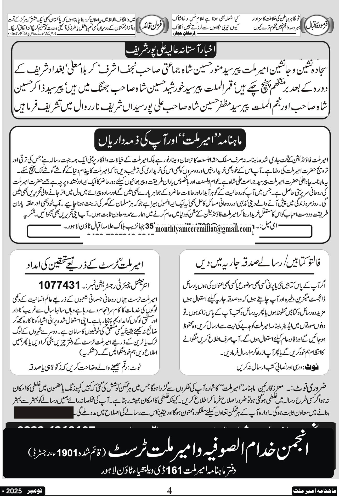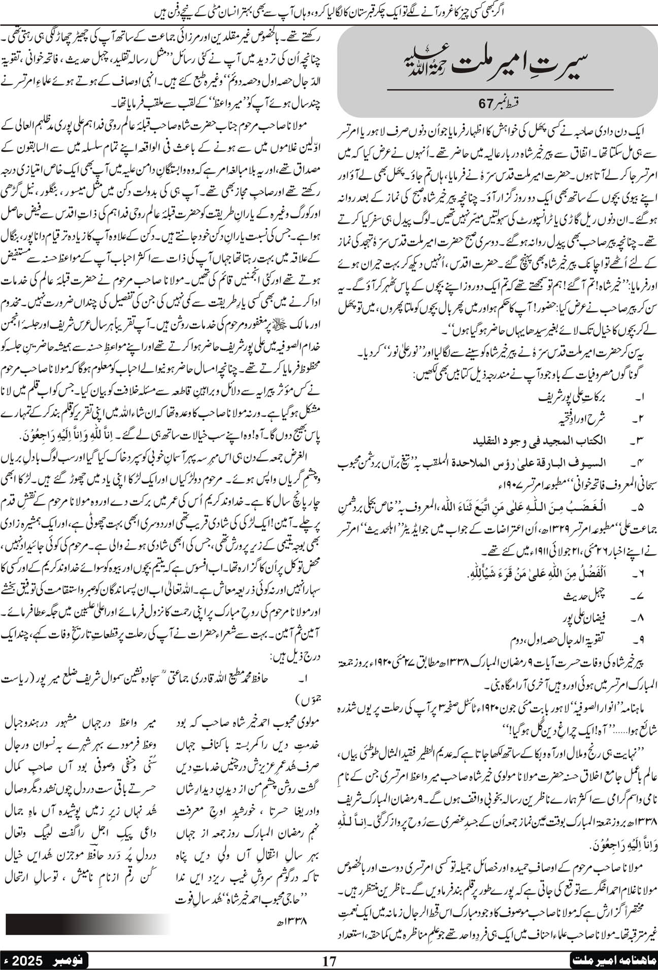 ماہنامہ امیرملت | نومبر 2025