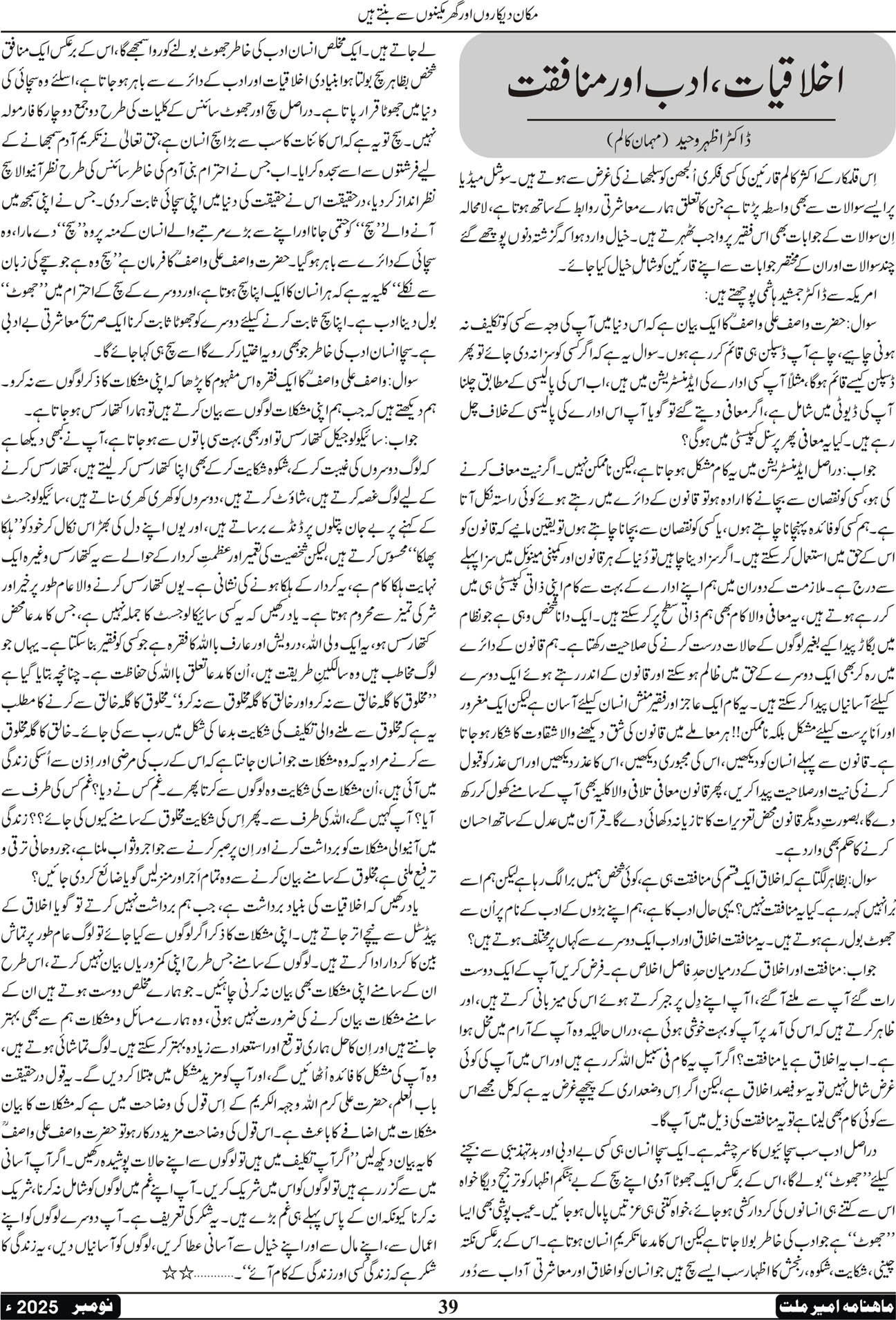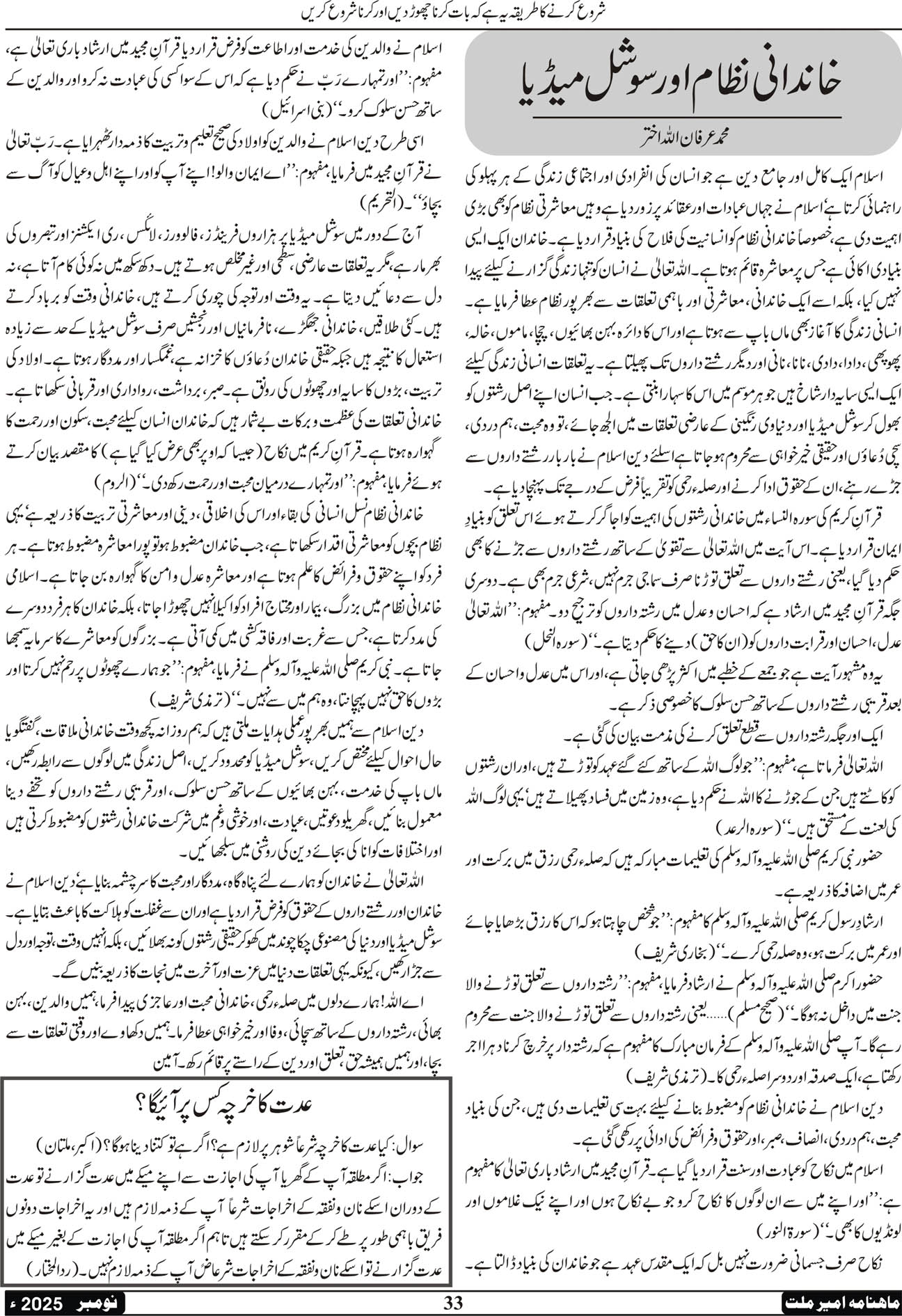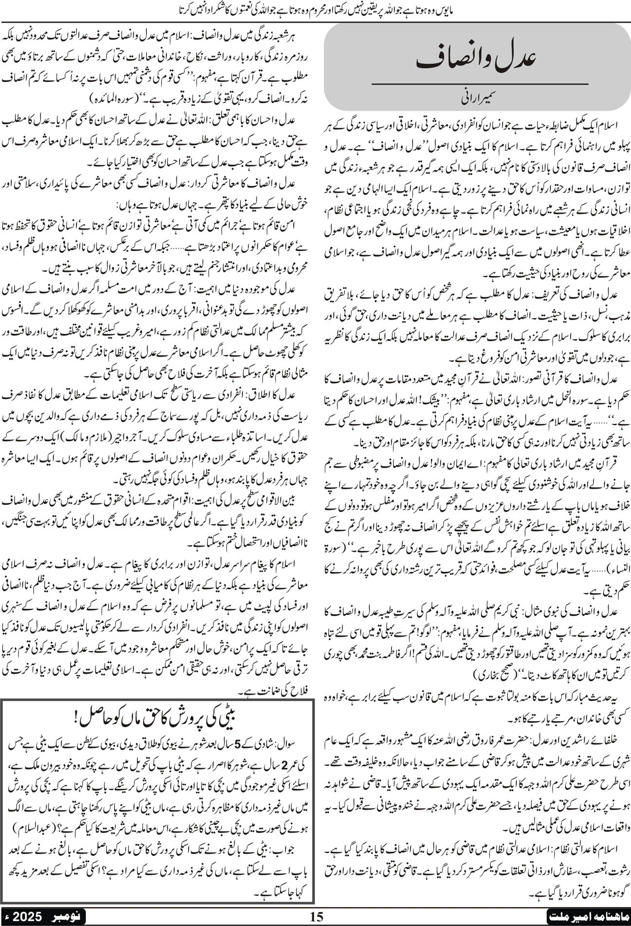 ماہنامہ امیرملت | نومبر 2025
